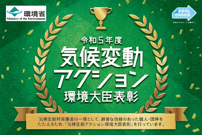 気候変動の緩和及び気候変動への適応に顕著な功績のあった個人・団体に対し、その功績をたたえる「気候変動アクション環境大臣表彰」の応募が始まっております。