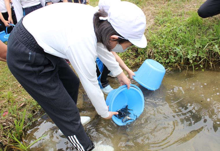 | これまでの取り組み | これまで、生活科や総合的な学習の時間、理科を中心に、全学年で地域の自然に関わる学習活動をしている。令和6年度の生活科と総合的な学習の時間の活動として、1・2年生「水辺の学校の生き物を見つけて調べよう」、3年生「カワラケツメイを育てて健康茶を地域の方に広めよう」、4年生「小野の森探検~樹木のすごさについて調べよう~」、5年生「稚鮎の放流~鮎の育つ佐波川の環境を守るために」、6年生「安心なくらしのために~災害に備える~」などのテーマで、地域や様々な事業所の支援を受けながら探求的な学習をすすめている。 |
