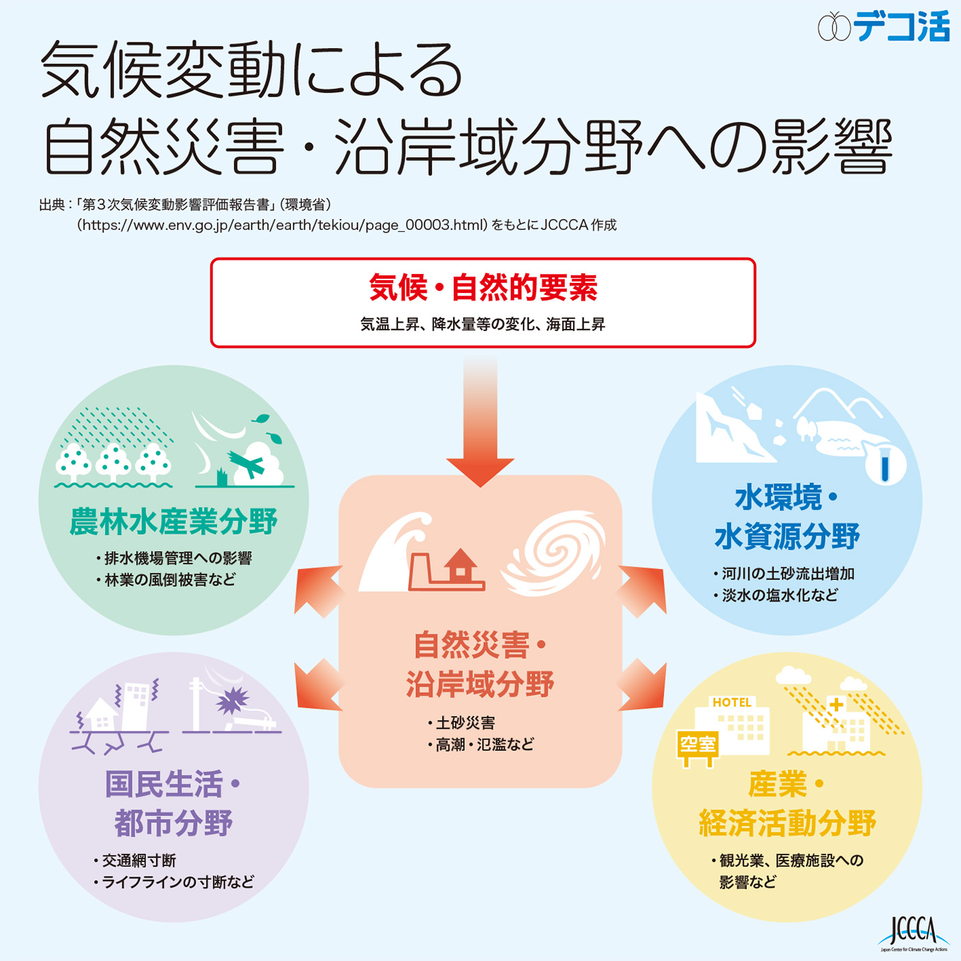 6-15 気候変動による自然災害・沿岸域分野への影響 2026 4/03 2026年3月31日2026年4月3日 出典:「第3次気候変動影響評価報告書」(環境省) 気候変動による自然災害・沿岸域分野への影響ダウンロード ダウンロード予約 閉じる ダウンロードフォームへ 他の図表を選ぶすべて削除 使える素材集一覧へ 関連記事 1-01 温室効果ガスと地球温暖化メカニズム 2010年7月4日 東ブレッガー氷河の後退 2010年7月5日 ブライトホルン近くの氷河 2010年7月8日 ヒマラヤ(東ネパール)のAX010氷河 2010年7月8日 湖を漂う大氷塊 2010年7月8日 アンデスから崩落する氷河 2010年7月8日 スイス、アルプスの氷河 2010年7月8日 ハムナ氷曝(ひょうばく) 2010年7月8日