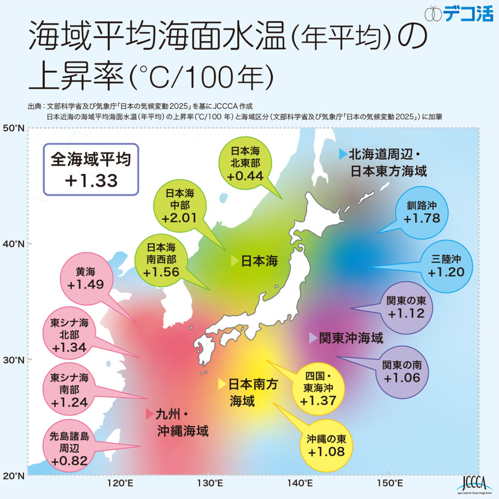 6-12 海域平均海面水温(年平均)の上昇率(°C/100年)